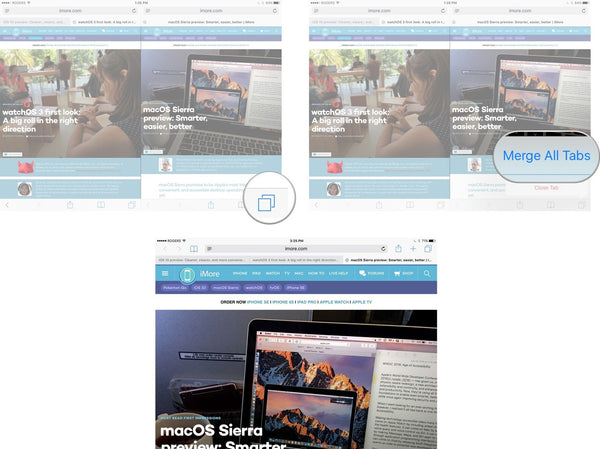 If you no longer want Safari Split View open, but you want to keep all your tabs, you can collapse everything back down.